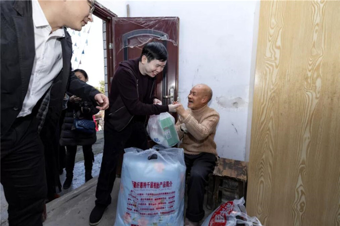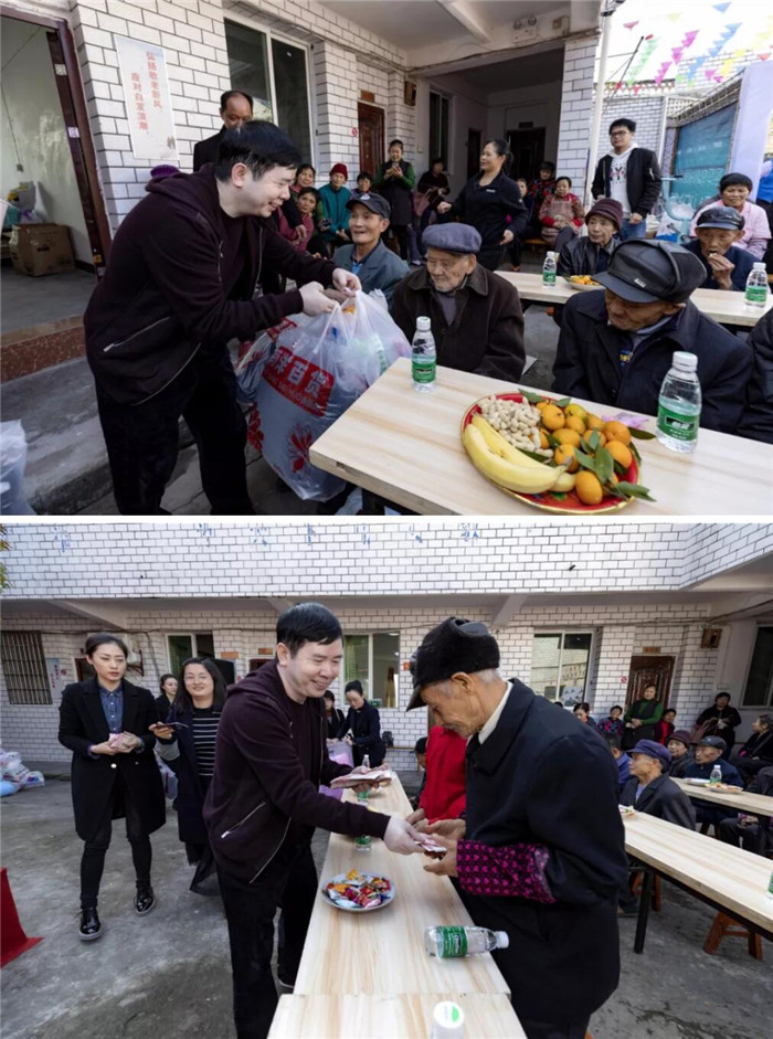 张远平董事长为老人们带来礼物和慰问金