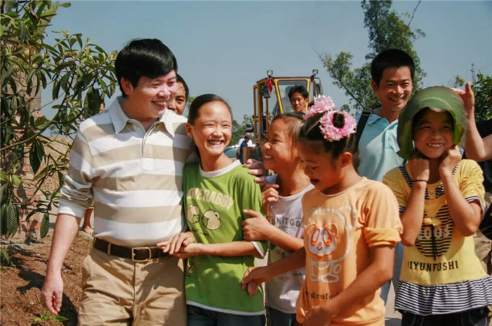 张远平董事长和家乡孩子们在一起(资料图)